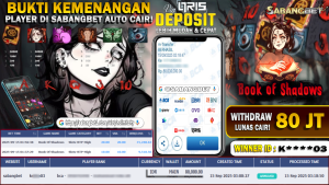 BUKTI KEMENANGAN 15 SEPTEMBER 2025 DI GAME BOOK OF SHADOWS WD 80 JUTA