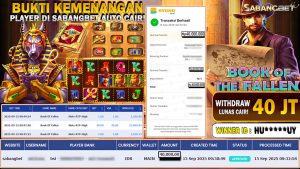 BUKTI KEMENANGAN 15 SEPTEMBER 2025 DI GAME BOOK OF THE FALLEN WD 40 JUTA