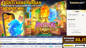 BUKTI KEMENANGAN 04 SEPTEMBER 2025 DI GAME MYSTICAK-SPIRITS ( POCKET GAME SOFT ) WD 31 JUTA