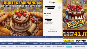 BUKTI KEMENANGAN 29 JUNI 2025 DI GAME BAKERY BONANZA WD 41 JUTA