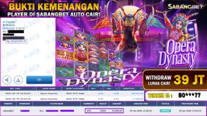 BUKTI KEMENANGAN 30 JUNI 2025 DI GAME OPERA DINASTY ’PG SOFT’ WD 39 JUTA