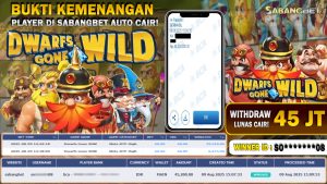 BUKTI KEMENANGAN 09 AGUSTUS 2025 DI GAME DWARFS GONE WILD WD 45 JUTA