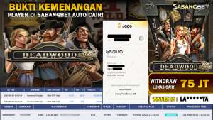 BUKTI KEMENANGAN 02 AGUSTUS 2025 DI GAME DEADWOOD XNUDGE WD 75 JUTA