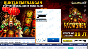 BUKTI KEMENANGAN 20 MEI 2025 DI GAME FA CAI SHEN WD 29 JUTA