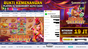 BUKTI KEMENANGAN 20 MEI 2025 DI GAME CIRCUS DELIGHT WD 19 JUTA